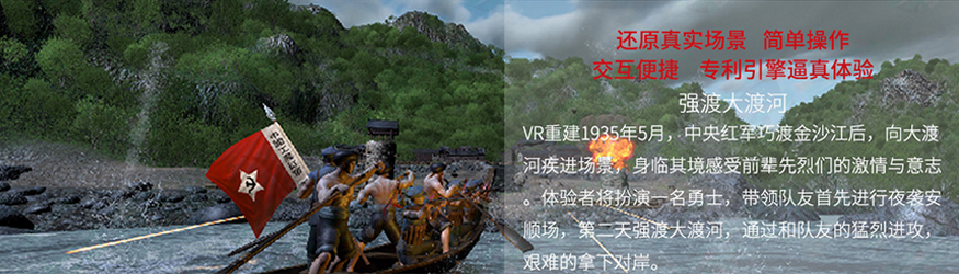 强渡大渡河通过vr场景重建,让体验者通过简单的操作,和声光电的立体感受切身体验。