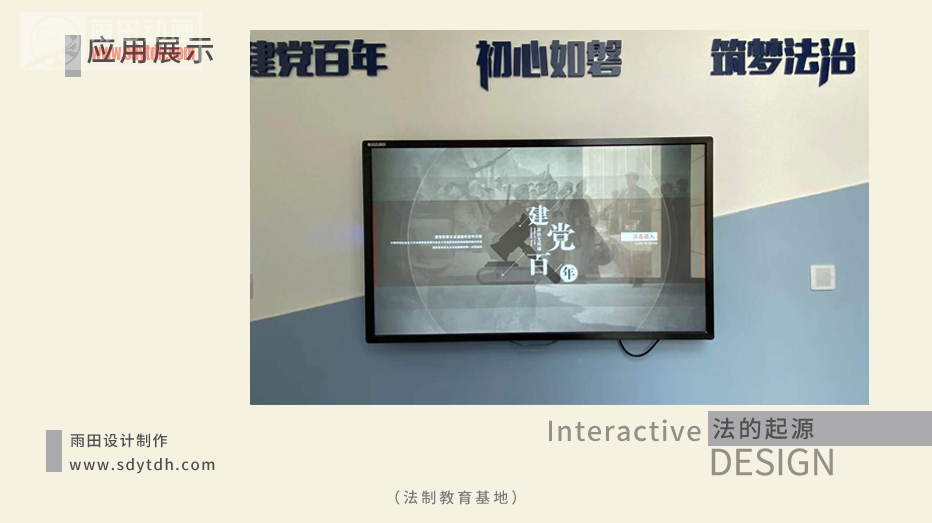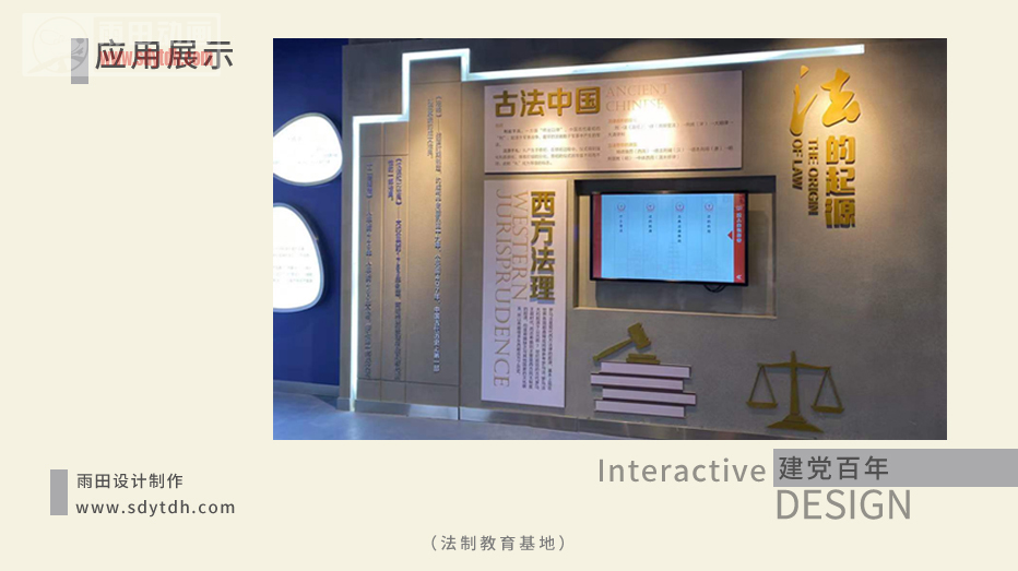 1.建党百年交互程序通过老照片/影像 资料的交互形式展示,增强未成年人对党史中 关于法治内容沿革的认识,以建党后时间发展脉络为轴线,从革命根据地法制建设到全面依法治国,关于建党后法治建设的内容。