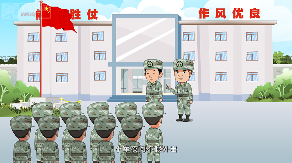1.服务导向:本例为二维故事类动画应用。部队不良风气故事动画片;