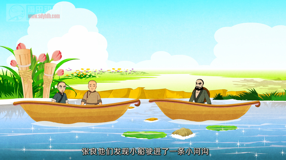 第二天拂晓时分,红灯消失,但余音尚在,张良他们发现小船驶进了一条小河沟。小河水清见底,鱼虾嬉戏,雁鹤翱翔,岸边芦苇荡茫茫无际,柽柳林绵延无边,鲜花盛开,蜂飞蝶舞,鸟叫蝉鸣,清香幽远,好一个神奇的仙境。