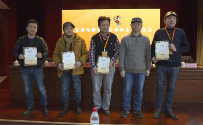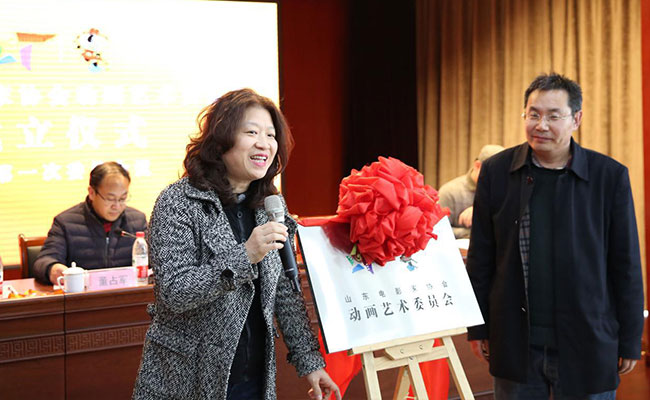 山东省电影家协会主席于海丰宣布动画艺术委员会成立,并与山东师范大学传媒学院院长马池珠共同为动画艺术委员会揭牌。